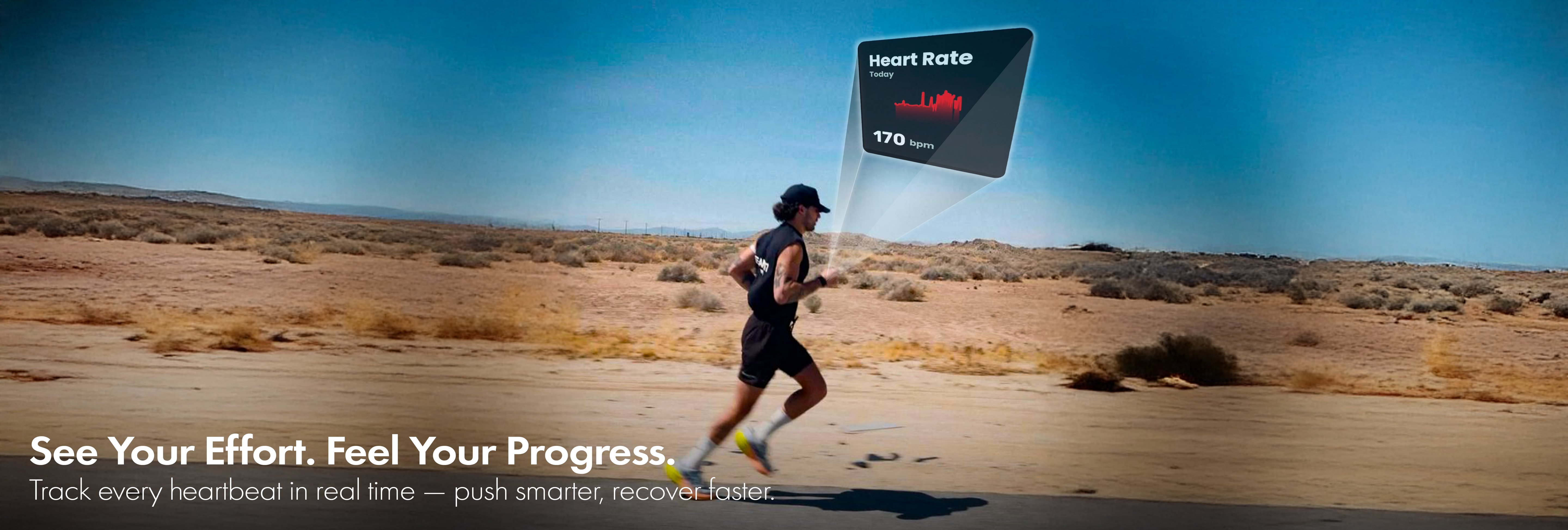 Train met volledige bewustzijn. Muziek, telefoontjes en realtime audio-coaching — zonder je oren te blokkeren. De Bone-Conduction Smart Glasses houden je verbonden en veilig.